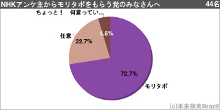「NHKから国民を守る党」#123937で「NHKアンケ主からモリタポをもらう党」と答えた方への質問でした。