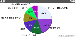 このアンケートと年齢、性別、出身都道府県、居住都道府県でのクロス集計を見る Tweet