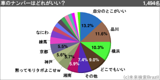 自分が乗る車(二輪でも可)のナンバーで、つけたいなーと思う京浜、京阪神のナンバーを1〜3つ選んでください。
